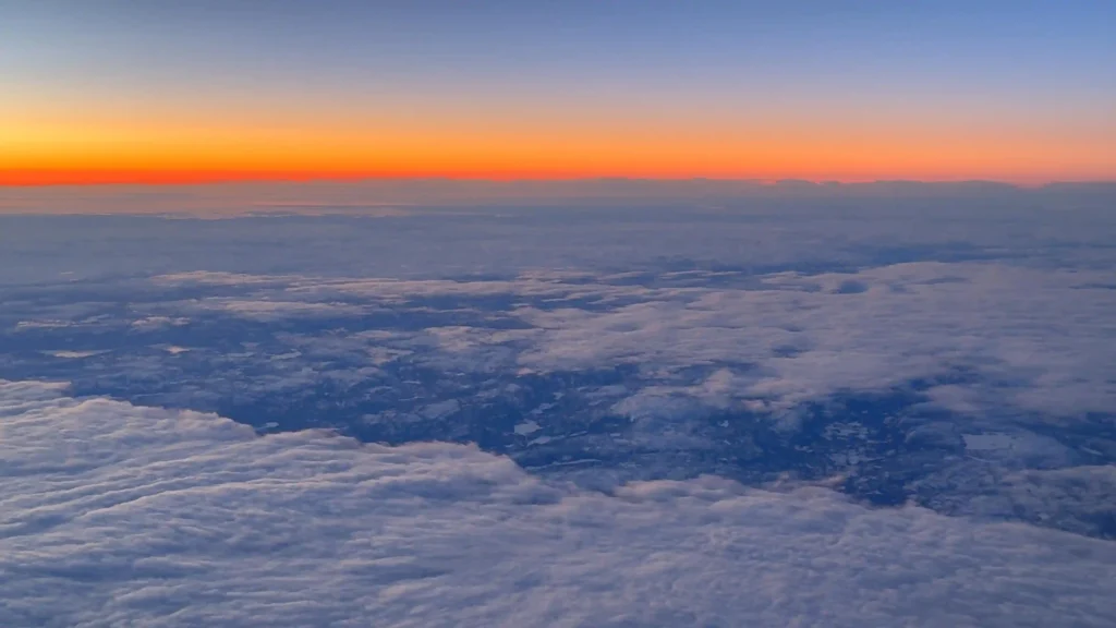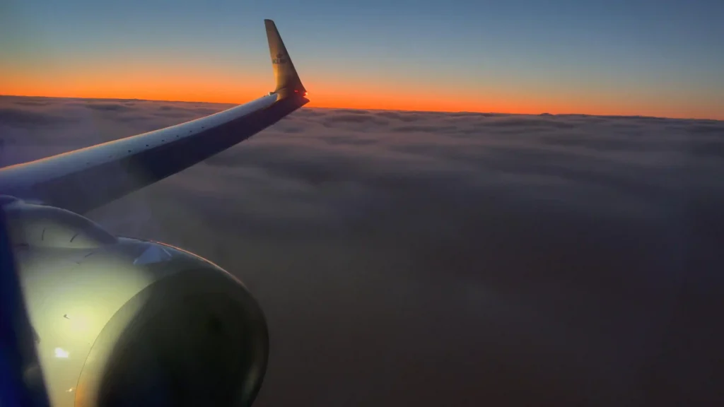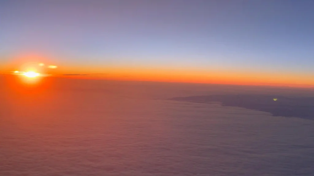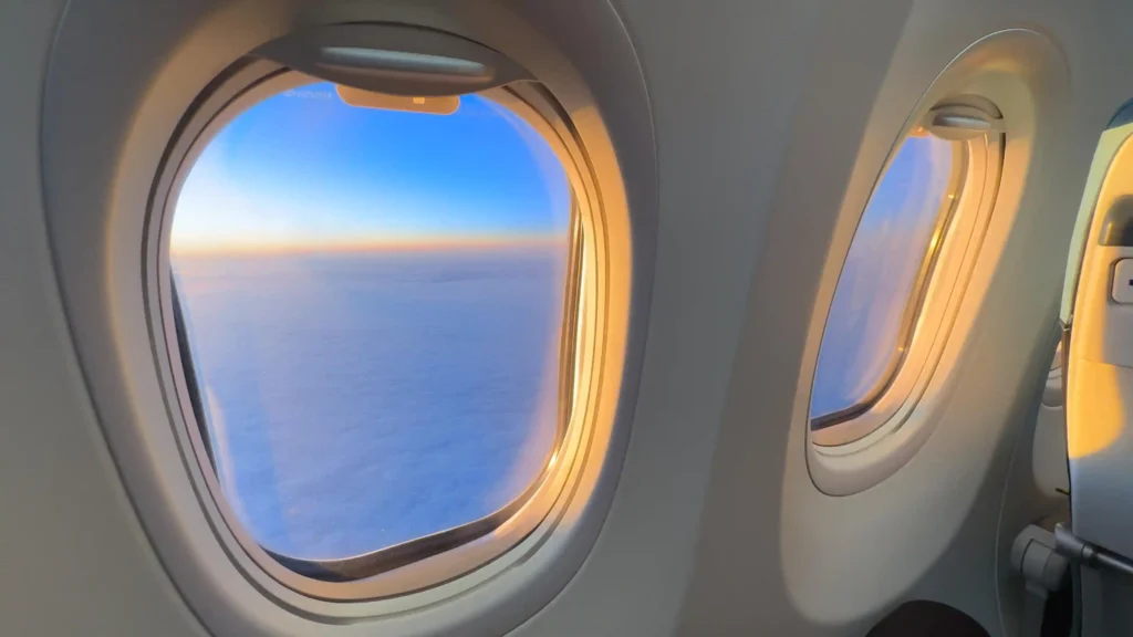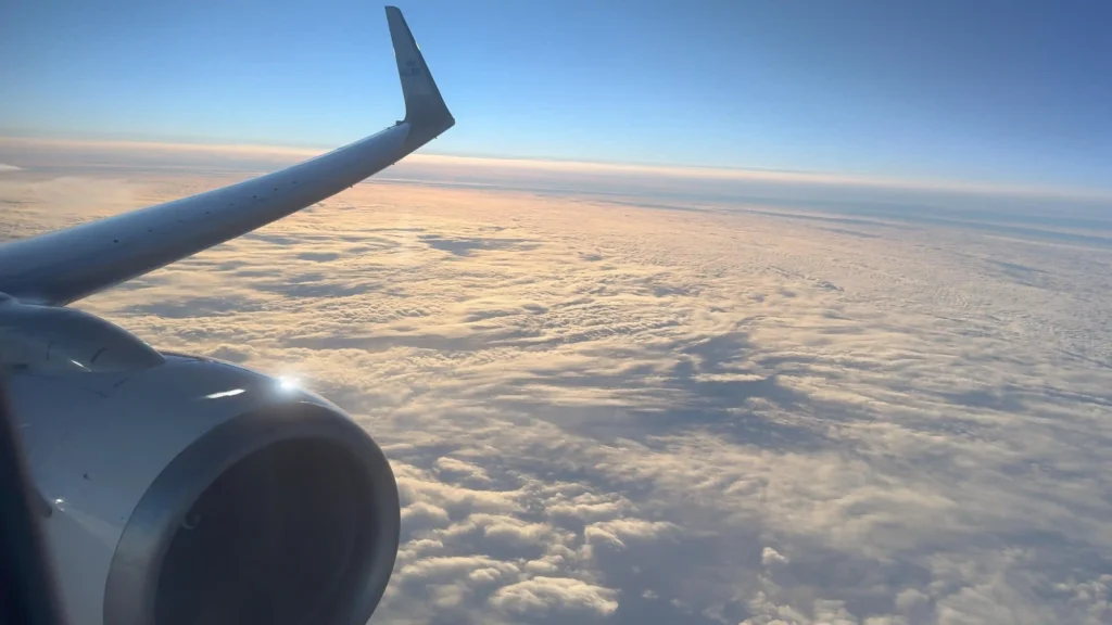 And from there, the scenery became one of the highlights of the flight. Above the clouds, we were treated to beautiful low winter sun views, with warm light filling the cabin and giving the whole journey a very special atmosphere. On a short European sector like this, those kinds of views can make a big difference to the overall experience.