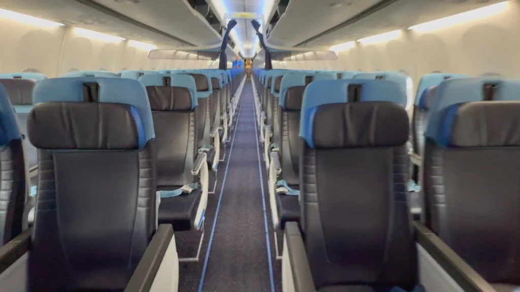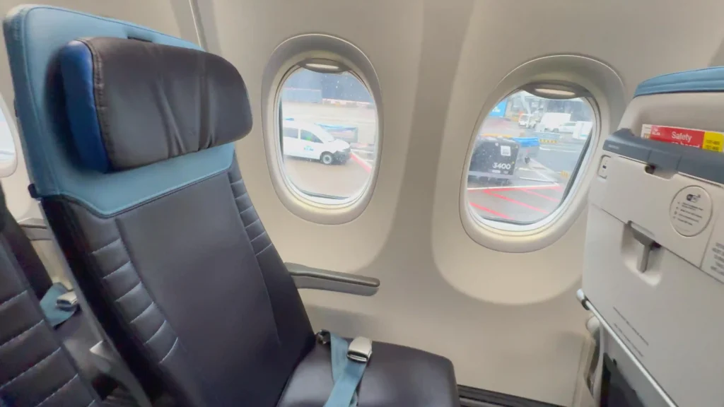 Boarding for KL1205 was smooth and efficient, exactly what you would hope for on a short intra-Europe flight. Once onboard, the first impression was very positive. This may be one of KLM’s older Boeing 737-800s, but with the newer cabin installed, the aircraft feels much fresher than you might expect. The updated interior gives the cabin a far more modern look, and it immediately feels like a clear improvement over KLM’s older narrowbody cabins.