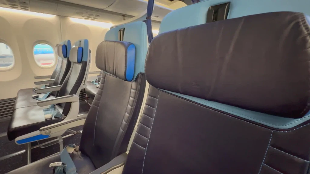 The cabin itself looks stylish and well maintained, with a clean and pleasant design that works well for a short European flight. While European Business Class is of course still a relatively simple product compared with long-haul premium cabins, KLM does a good job of making the experience feel more polished than average thanks to the refreshed interior and welcoming atmosphere onboard.