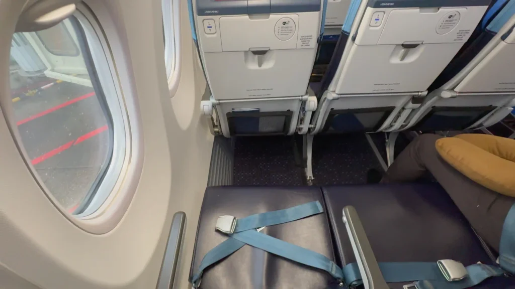 My seat for the flight was 4A, a window seat on the left-hand side. Like most European Business Class products, the seat itself is still a standard economy-style seat, with the middle seat blocked to provide extra personal space. That part is nothing unusual. What did stand out, however, was that the seat felt comfortable enough for this 1 hour and 45 minute flight, and the extra space from the blocked middle made the overall experience feel noticeably more relaxed.