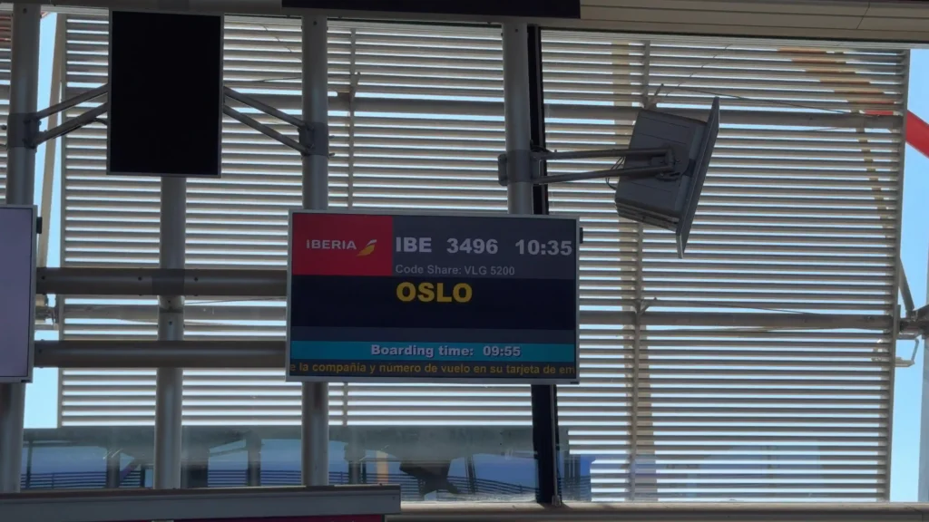 Hoy tocaba uno de los trayectos más largos dentro de Europa: Madrid a Oslo, casi 4 horas de vuelo. Y si hay un aeropuerto en el que siempre disfruto empezando un viaje, es Madrid-Barajas: luminoso, tranquilo y realmente bonito.