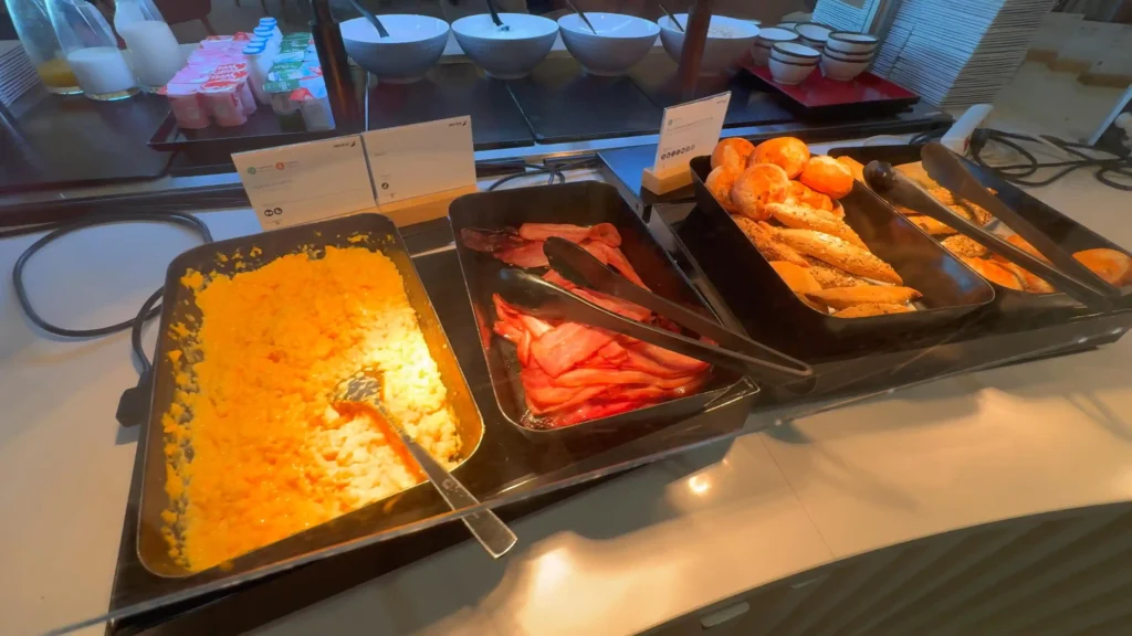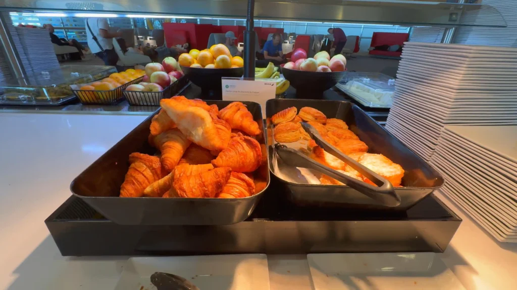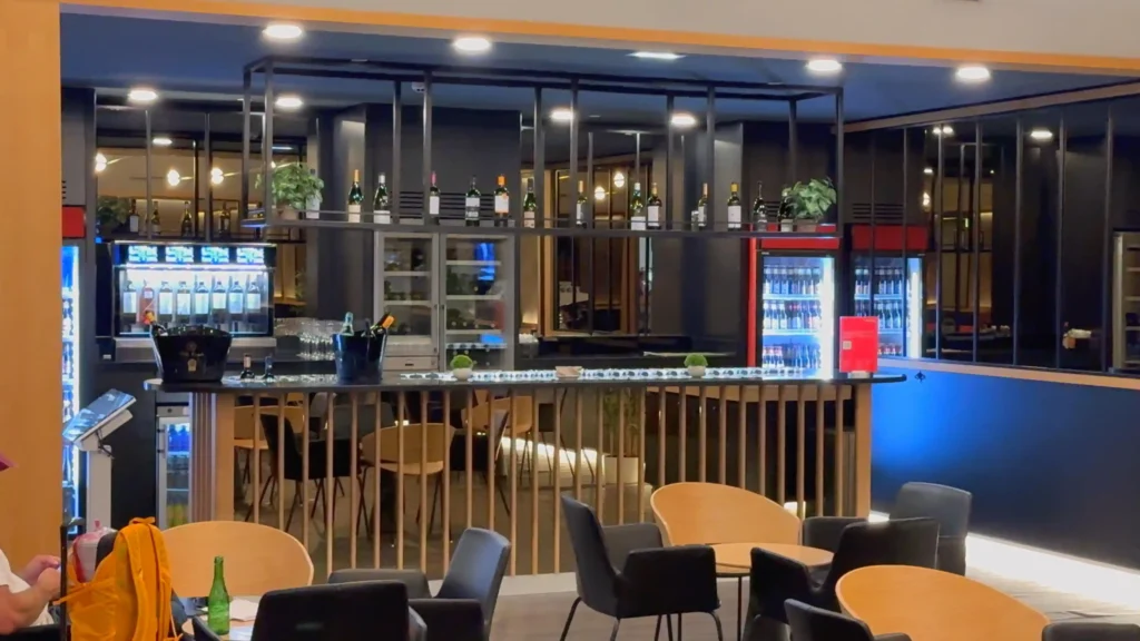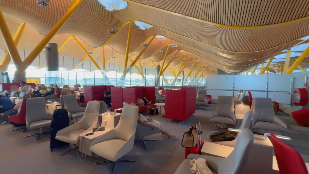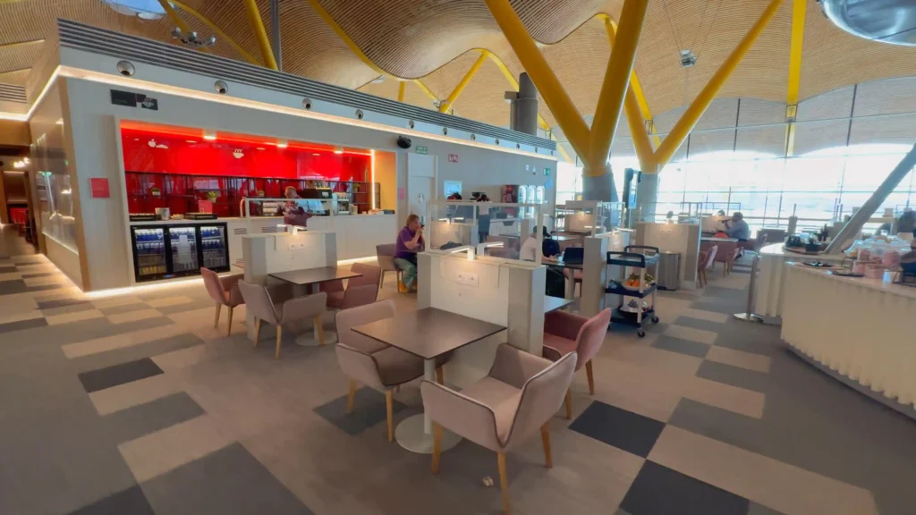 Lo primero que se nota es el espacio: es una sala grande, luminosa y con muchísimas zonas para sentarse, así que incluso en horas concurridas suele ser fácil encontrar un lugar cómodo para relajarse o trabajar. También cuenta con duchas (perfectas si vienes de un largo vuelo previo), y un bar que le da un toque más premium que muchas salas europeas.