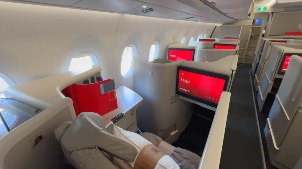 Y sí: es un paso claramente superior a los asientos antiguos del A350 de Iberia, que ya eran cómodos, pero no tenían esta sensación de privacidad y refinamiento. Las puertas y los materiales mejorados hacen que la cabina se sienta más exclusiva, sin perder esa identidad española limpia y minimalista que caracteriza a Iberia.