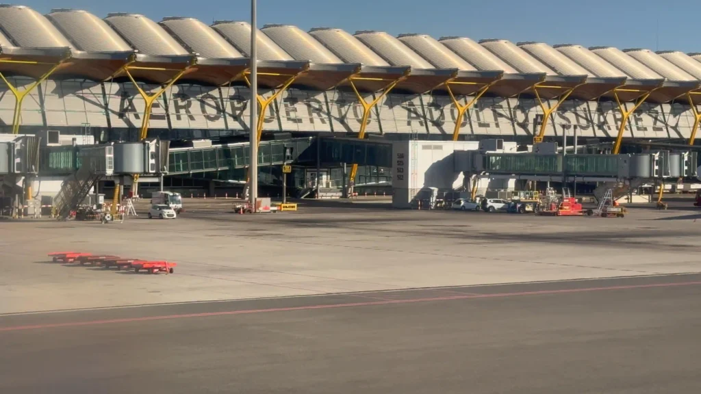 Después del check-in, me dirigí hacia la Terminal 4S (T4S), desde donde Iberia opera la mayoría de sus vuelos de largo radio non-Schengen. Para llegar hay que tomar un tren automático bajo las pistas y, una vez en la satélite, pasar por control de pasaportes y seguridad. Por eso conviene ir con margen: el recorrido completo desde facturación hasta la puerta puede tardar fácilmente hasta una hora.