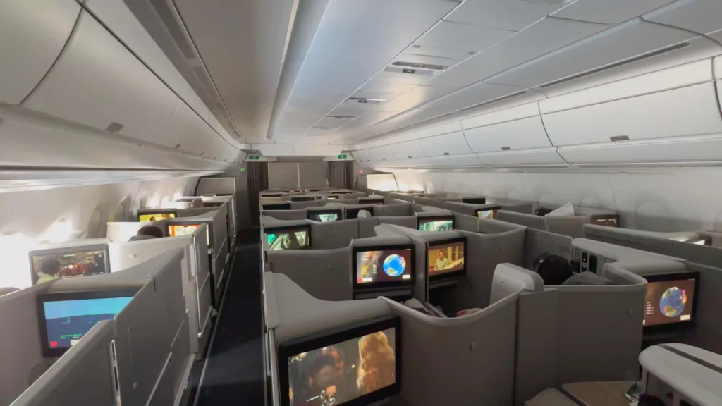 Step onboard and you immediately notice the difference. The cabin is arranged in a 1-2-1 layout, ensuring direct aisle access for every passenger.